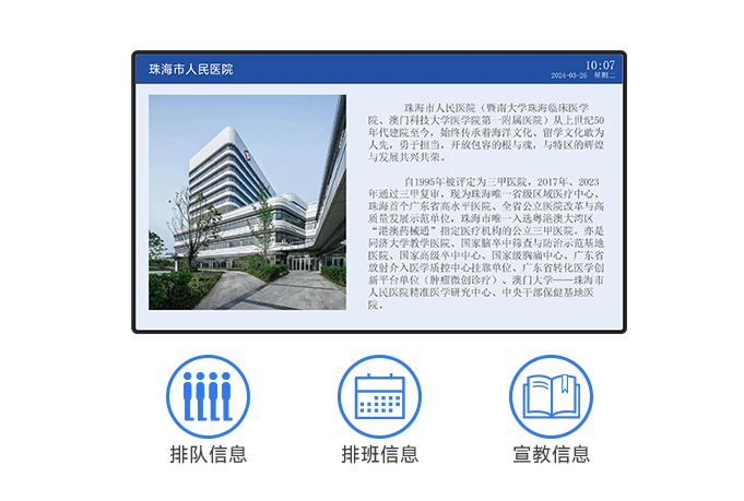 可用于顯示排隊(duì)信息、排班信息、健康宣教信息等